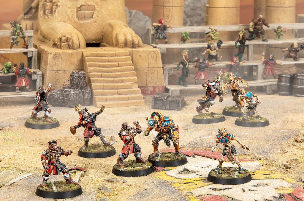 Oltre ai modelli, nella scatola si trova un regolamento di 200 pagine aggiornato (per ora solo in inglese e tedesco), campo e panchine a doppia faccia, 37 nuovi segnalini per tenere traccia di ferite e status, sagome, dadi e perfino pratiche schede riassuntive per facilitare il gioco. Tra le novità più apprezzate ci sono i token di stato agganciabili alla base delle miniature, utili per identificare condizioni come “Stunned” o “Prone” in modo immediato e chiaro.