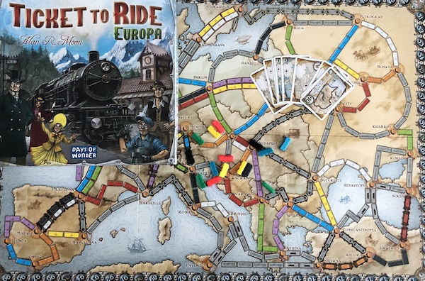 Gioco di grande successo creato da Alan R. Moore e pubblicato da Days of Wonder nel 2004. L’ambientazione è “ferroviaria” perché i partecipanti devono cercare di costruire la migliore rete di collegamenti su binari nell’area in cui si svolge la partita. Di Ticket to Ride esistono infatti varie espansioni geografiche: Stati Uniti/Canada (prima edizione del gioco), Europa, Paesi Nordici, Germania e altre ancora.