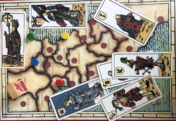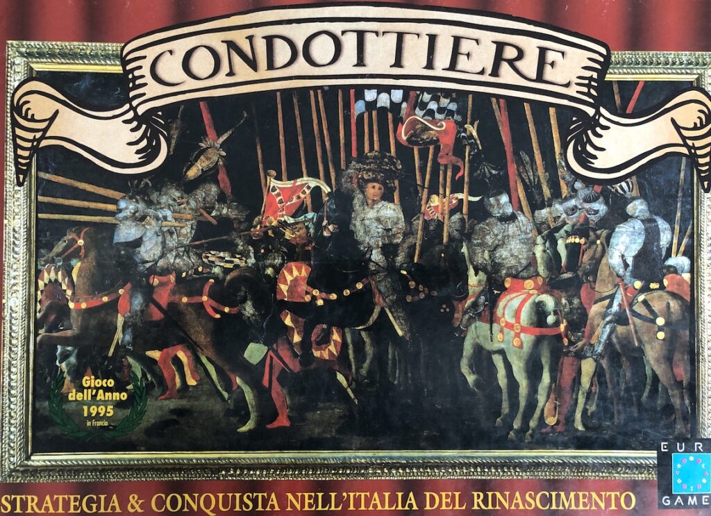 Sviluppato da Dominique Ehrhard e Duccio Vitale e pubblicato nel 1995 da Eurogames, Condottiere è un boardgame ambientato nell’Italia a cavallo tra tardo Medioevo e Rinascimento (sec. XIV-XV). I giocatori, infatti, impersonano i “capitani di ventura” di quel periodo che venivano assoldati dai numerosi Stati della penisola (Milano, Venezia, Genova etc) per farsi guerra uno con l’altro.