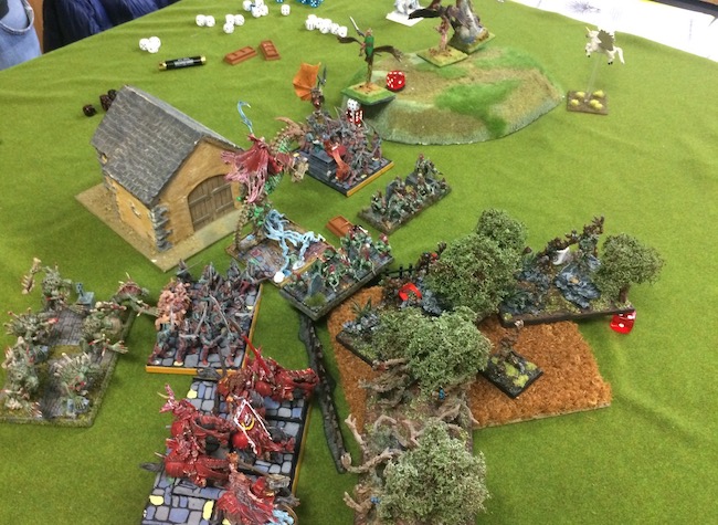 Tutto questo non esiste in Kings of War. I movimenti sono regolati in maniera molto geometrica, quasi scacchistica, e consentono alle unità un numero limitato di conversioni (una o due al massimo per chi ha la regola nimble). Anche il volo, comunque molto utile, ha restrizioni più marcate rispetto al gioco di Games Workshop.