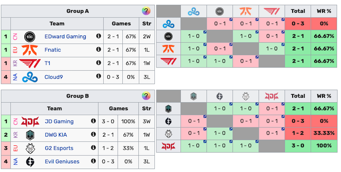 Nel Gruppo A, probabilmente il più difficile, i Cloud9 sono partiti male perdendo contro Edward Gaming, campione in carica, e Fnatic. Due sfide senza dubbio molto difficili, anche perché i Fnatic sono in uno stato di forma eccellente mentre il team cinese ha le potenzialità per il back-to-back. Ma perderle entrambe ha trasformato la terza partita in una sorta di “dentro o fuori” per la compagine nordamericana.