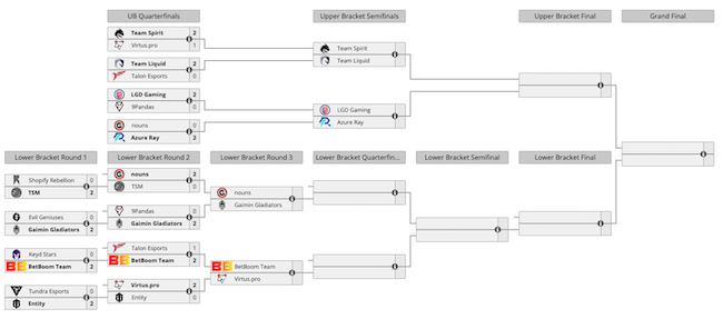Gli Entity si sono poi arresi 0-2 ai Virtus.pro scesi dall’Upper Bracket. Degli altri team eliminati dal tabellone dei vincitori, solo i nouns hanno raggiunto Virtus.pro nelle prime semifinali (terzo round) del Lower Bracket. Il team composto da un mix di giocatori statunitensi e sudamericani (Perù e Brasile) ha battuto 2-0 TSM e adesso sfida l’organizzazione europea Gaiming Gladiators.