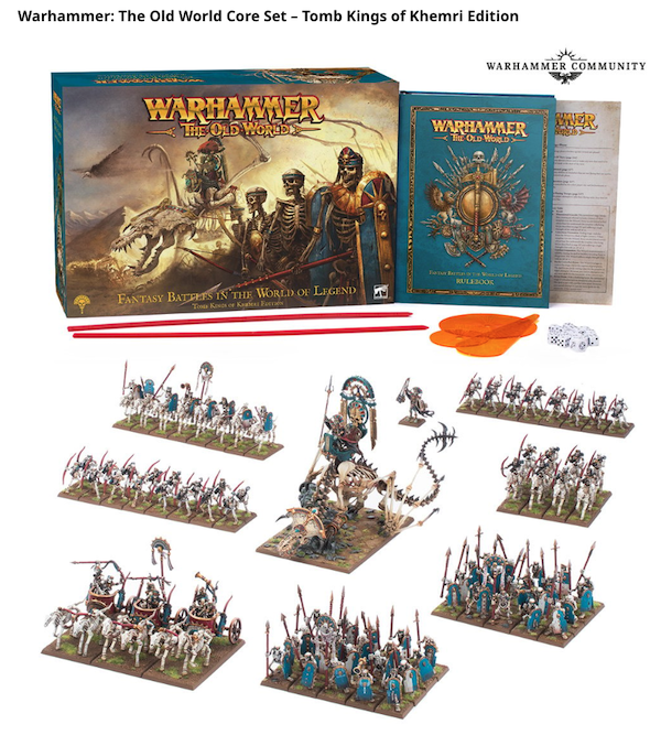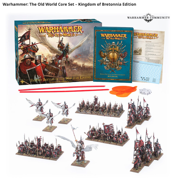 Contrariamente a quanto fatto con le ultime 5 edizioni di WHFB (dalla 4a all’8a), Games Workshop ha scelto di duplicare gli starter set, cioè le scatole che contengono i materiali per il gioco. Anziché presentare unità di due eserciti diversi nello stesso starter, adesso i giocatori possono scegliere tra quello dedicato al Kingdom of Bretonnia e quello dei Tomb Kings of Khemri. Nulla però vieta di acquistarli entrambi!