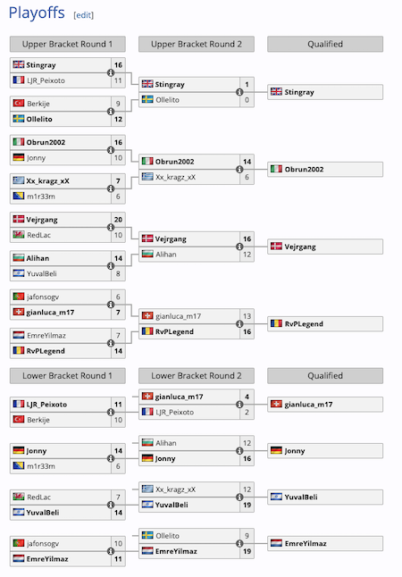 I Playoffs hanno messo di fronte gli ultimi 16 con partita “secca” (Bo1) e doppio tabellone. I vincitori di due round consecutivi, quarti di finale e semifinali, si sono qualificati alla fase finale dell’UEFA eEURO 2025, ovvero: Stingray, Obrun2002, Vejrgang e il pro player rumeno Razvan “RvPLegend” Puiu il quale, un po’ a sorpresa, nei quarti di finale ha battuto 14-7 il fortissimo olandese EmreYilmaz.
