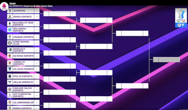La EA Sports FC eSuperCup ha offerto una formula molto semplice: tabellone unico ad eliminazione diretta, con questi abbinamenti: