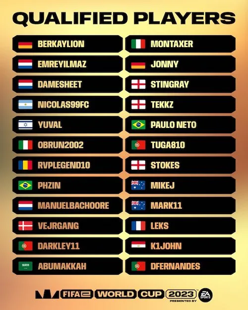 Questi sono i 24 che dalla metà di luglio si contenderanno in Arabia Saudita la FIFAe World Cup 2023: