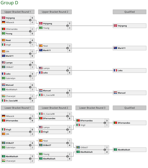 Nella parte alta del WB Virgil si è trovato di fronte uno scoglio quasi insuperabile in Ander “Neat” Tobal. Lo spagnolo ha infatti battuto il secondo giocatore del Team Exeed presente ai Playoffs con il punteggio di 2-1 2-0, solo per essere sconfitto a sua volta dall’australiano Mark “Mark11” Zakhary nella partita per la qualificazione.