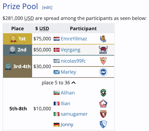 Yilmaz ha così potuto sollevare al cielo l’ambita coppa che vale $75.000 di premio. Vejrgang, invece si è dovuto “accontentare” di $50.000: comunque un bel premio che, almeno in parte, consola il danese per il mancato “triplete”, dopo la vittoria del team RasenBallsport Leipzig nella Virtual Bundersliga (Vejrgang in realtà è arrivato secondo alle spalle del compagno di squadra Levy “levyfinn” Rieck) e soprattutto quella ottenuta nell’FC Pro Open, battendo in finale Francesco “Obrun2002” Tagliafierro.
