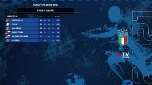 A due match dalla fine, la classifica recita: Portogallo 21 punti, Italia 18, Moldavia 15, Inghilterra 10, Irlanda del Nord 5, Islanda 1. La nostra nazionale deve vincerli entrambi e sperare che la Moldavia faccia la partita della vita contro il Portogallo.