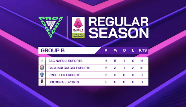 Più netto il divario nel Gruppo B, dominato da Danilo “Danipitbull” Pinto. Il due volte “scudettato” (col Benevento e con la Juventus) ha imposto la sua legge vincendo tutte e tre le partite: 16 punti e, per ora, imbattuto dopo 6 partite. Cagliari ed Empoli hanno chiuso rispettivamente a 6 e 7 punti di distanza dal Napoli, mentre il Bologna si è confermato fanalino di coda del torneo, unico team a 0 punti.