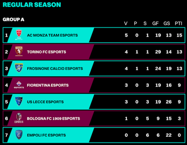 La eSerie A TIM stagione 2023-24 ha emesso il primo verdetto relativo alla Regular Season. Ieri sono infatti andate in scena le partite del secondo e ultimo round del Gruppo A che comprende Torino, Empoli, Frosinone, Monza, Bologna, Lecce e Fiorentina.