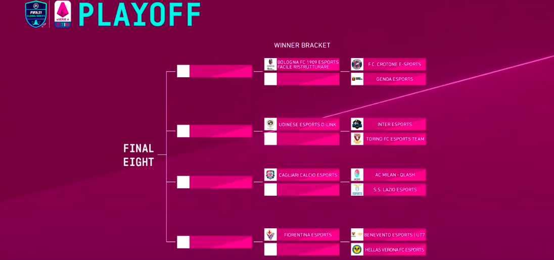 La Fiorentina accede così direttamente ai quarti di finale, mentre Inter e Lazio dovranno superare il preturno del Winner Bracket. Atalanta al tentativo di recupero nel Loser Bracket.