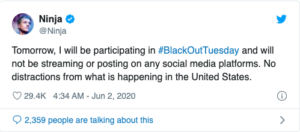 Non è mancato anche un comunicato da parte di Twitch, la piattaforma di streaming numero uno per il gioco: “Le persone di colore hanno sofferto sotto il peso oppressivo del razzismo in America, non possiamo rimanere in silenzio ignorando il loro dolore. Vi chiediamo di unirvi e di supportare la causa in ogni modo, che si tratti del vostro tempo, talento o denaro. Non permettiamo che l’ingiustizia ci impedisca di creare una comunità migliore per il futuro”.