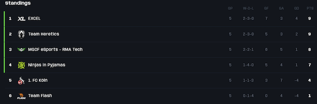 Dovrebbero essere queste le 4 favorite, anche se alla fine del girone di andata c’è ancora molto equilibrio. Comandano in due: Excel e Team Heretics, con 9 punti a testa (2 vittorie e 3 sconfitte). Al secondo posto si è inserita la formazione tutta brasiliana (“Barreto” e “Crepaldi”) del Minas Gerais FC-RMA Tech che ha totalizzato 8 punti. Anche se ancora imbattuti, i Ninjas sono solo quarti a 7 punti. Chiudono Koln a 4 e il Team Flash di Singapore a 1. Questo il quadro del gruppo A alla fine del girone di andata: