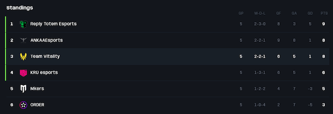 Morale: un modesto 5° posto per i Mkers i quali, però, con 5 punti possono ancora giocarsela. Tra loro e i Reply Totem ci sono 3 formazioni: ANKAAEsports e Team Vitality con 8 punti, KRU eSports a 6. Tre punti sono pochi, ma non è più permesso sbagliare. Chiude la classifica a 3 punti il team ORDER.
