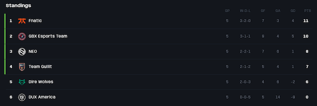 Il quarto posto utile per il Knockout Stage sarà probabilmente una questione tra il team messicano Essentials Gaming e quello inglese dei SAF, appaiati a 4 punti. Il team SAF è stato l’unico in grado di bloccare i Riders di Tuga810. Basterà la presenza del n.3 del ranking West Europe Dan “StingrayJnr” Ray a dare un vantaggio SAF? Difficile a dirsi, anche perché lo scontro diretto è stato vinto dalla formazione messicano-argentina.