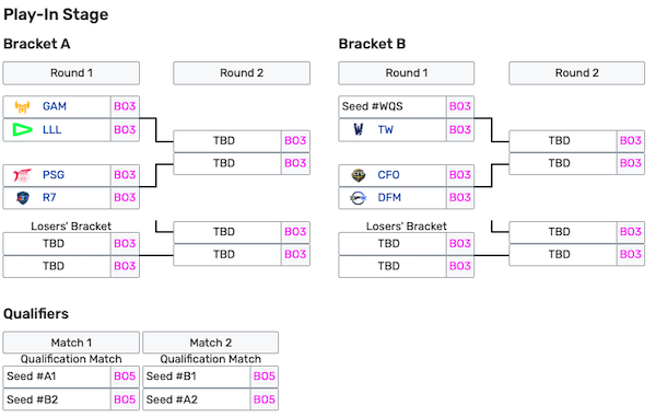Le altre aree geografiche in cui è diviso il competitivo di LoL hanno qualificato 7 team al Play-In. Due vengono dalla PCS (area Pacifico/Sudest asiatico/Oceania) e sono PSG Talon e CTBC Flying Oyster. Il Vietnam è rappresentato da Gam Esports e Team Whales, mentre il Giappone ha i consolidati Detonation FocusMe. Le ultime due sono LOUD (Brasile, area CBLOL) e Movistar R7 (America Latina).