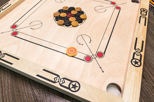 Le regole del gioco sono abbastanza semplici. Lo scopo è mandare le proprie pedine (9 in tutto) nelle 4 buche posizionate agli angoli del tavolo. Le pedine vanno colpite lo striker, cioè la pedina neutra (potremmo definirla il “boccino”) che invece non va imbucata. C’è inoltre una pedina rossa, la Regina, che può essere mandata in buca più volte nella partita. E’ necessario però imbucare una delle proprie pedine prima e dopo la Regina.
