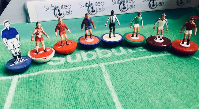 Qualcuno forse ricorderà di aver giocato da bambino con i tappi delle bottiglie, usandoli a mo’ di calciatori per colpire una pallina di carta e fare gol. Bene, il Subbuteo è proprio questo: una simulazione di calcio soltanto un po’ più evoluta di quella dei tappi, grazie a miniature in plastica da muovere a colpi di dito su un panno verde.