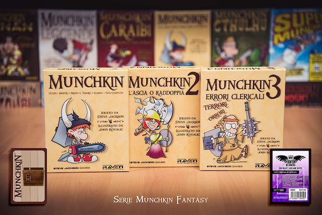 Cominciamo dal gioco di carte non collezionabili che ha fatto da apripista al successo di questo genere: Munchkin. Creato dal famoso inventore di giochi Steve Jackson nonché fondatore dell’omonima casa editrice, Munchkin ha ormai più di vent’anni. La prima edizione è datata 2000, anche se in Italia è arrivata nel 2003 grazie Raven Distribution. Da allora sono uscite più di trenta tra espansioni e set autonomi, a testimonianza dell’enorme successo ottenuto da questo “piccolo grande gioco”.