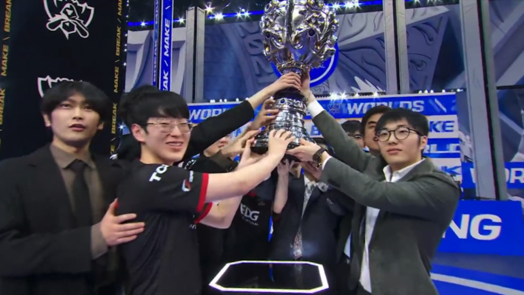 Gli EDG hanno schierato i player cinesi Li Xuan-Jun “Flandre” in corsia superiore, Zhao Li-Jie “Jiejie” in giungla e Tian Ye “Meiko” in botlane, e i due sudcoreani Lee Ye-chan “Scout” in corsia centrale (eletto MVP della serie) e Park Do-hyeon “Viper” in botlane.