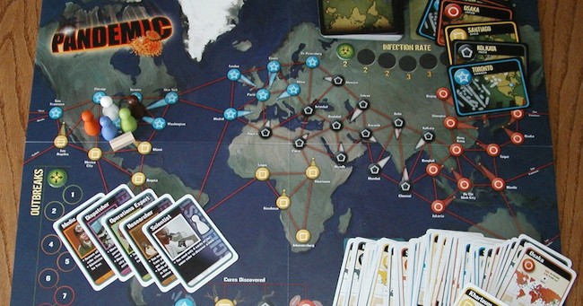 Ogni giocatore ha a disposizione un ruolo: Ricercatore, Esperto delle Operazioni, Scienziato, Responsabile Trasporti o Medico. Il gioco si svolge su una mappa che rappresenta le principali città del mondo, dove è necessario recuperare informazioni, costruire centri di ricerca, insomma collaborare per impedire che la malattia inizi a diffondersi a macchia d’olio. A quel punto sarà troppo tardi e il gioco avrà vinto!