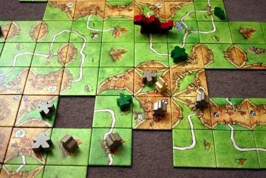 Le meccaniche sono semplici: al proprio turno, ogni giocatore (da 2 a max 5) pesca una tessera coperta che rappresenta un pezzo di città, di terreno, di monastero, di strada, di tutto ciò che può far parte di uno scenario medievale. Il giocatore deve posizionarla sul tavolo, attaccandola a quelle già presenti e cercando di realizzare una figura completa (la città, la strada, il podere etc). Ogni combinazione dà punti, vince che ne realizza di più.