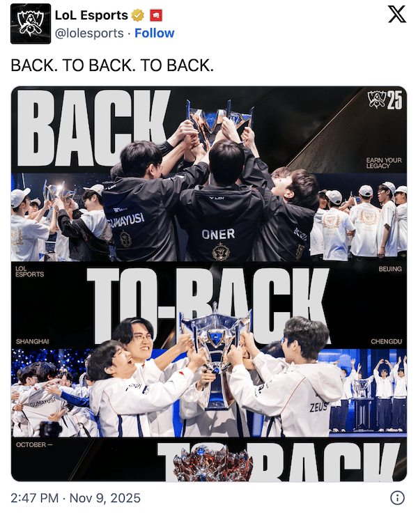 Ma non c’è solo lui. Questo è il risultato di un quartetto collaudato e coeso, formato da Mun ‘Oner’ Hyeon-jun, Faker, Lee ‘Gumayusi’ Min-hyeong e Ryu ‘Keria’ Min-seok, al quale si è aggiunto Choi Doran’ Hyeon-joon, capace di sostituire il forte Choi Zeus’ Woo-je, uscito da T1 nel 2024.