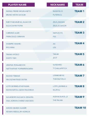 L’e-calcio di Konami è l’ultimo arrivato in ordine di tempo ai Gamers8 2023. L’organizzazione è stata affidata a Global Esports Tour che ha sviluppato una torneo in modalità 2vs2 per 10 coppie di players, tutte invitate in rappresentanza di diverse aree del globo. Questo è l’elenco: