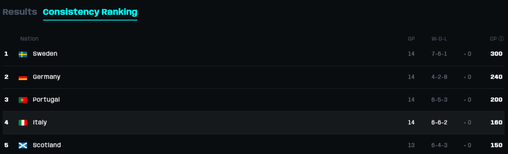Grazie al secondo posto ottenuto, l’Italia guadagni importanti consistency points che la collocano adesso al 4° posto del ranking: