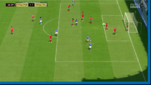 Torna in campo Karimisbak insieme a Obrun. Il Portogallo schiera Tuga810 e Diogo, altra coppia di altissimo livello. Al 36° segna Ibrahimovic di testa per il Portogallo. Nel primo tempo non succede molto altro, prevalgono le difese sugli attacchi e a centrocampo c’è grande equilibrio. Ma l’Italia al 48° riesce a superare lo sbarramento lusitano, palla a Mbappé che inventa un passaggio in area per il Fenomeno: tiro dall’altezza del dischetto e palla in rete! L’Italia prende coraggio e al 59° segna di nuovo, ma il gol è annullato per fuorigioco. Gli azzurri continuano a fare la partita, creano un altro paio di occasioni nitide ma il risultato rimane lo stesso: 1-1 al triplice fischio dell’arbitro.
