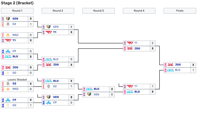 Il tabellone dei vincenti ha messo di fronte T1 e JD Gaming, in una delle partite più attese dell’intero torneo. Come già detto, era anche la rivincita delle semifinale mondiale e i JD Gaming non hanno perso l’occasione per pareggiare il conto. Il best-of-5 è stato equilibrato ed emozionante al tempo stesso, con il team cinese che si è imposto solo al double match point (2-3).