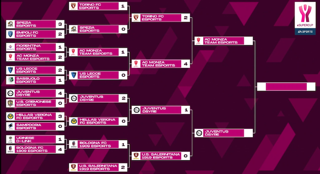 Il Monza si è fatto largo nella parte alte, superando nell’ordine Fiorentina Esports (2-1), US Lecce eSports (1-0) e Torino FC eSports (4-2). Sull’altro versante, la Juventus hanno battuto Cremonese eSports (4-0), Hellas Verona FC eSports (2-0) e U.S. Salernitana 1919 eSports (1-0).