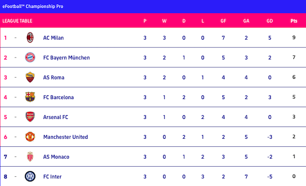 Questa è la classifica dopo la prima giornata dell’eFootball Championship Pro 2023: