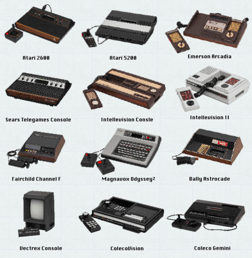 Già nel 1983 gli appassionati si trovano sommersi da dozzine di console diverse. L’offerta è sovrabbondante: le aziende vedono il business e si buttano a capofitto nel mercato. Tra queste ci sono ottimi brand ma anche molti che si improvvisano creatori di console e videogiochi. I loro prodotti sono quasi sempre scadenti.