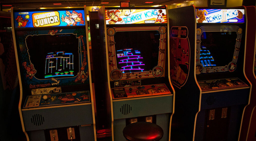 Ma i giochi arcade sono una cosa molto diversa dalle console, dai computer e in generale dal concetto di videogioco “mobile” a cui siamo abituati oggi. Gli arcade erano (e sono ancora) “cabine” stazionarie di gioco, dotate di schermo, joystick (o altro device) e un po’ di tasti. Per giocarci era necessario recarsi in una delle tante sale giochi spuntate come funghi in quel periodo.