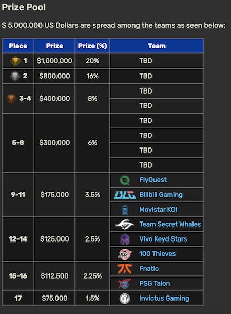 A quel punto è iniziato lo Swiss Stage, con 16 organizzazioni esportive al via: 3 per Cina, Americhe, Europa (EMEA), Asia-Pacifico e 4 per la Corea del Sud. La formula è quella classifica dello Swiss Stage su cinque round Bo1 (prime due fasi) e Bo3: chi ne vince tre accede alla fase successiva, chi ne perde tre è out.