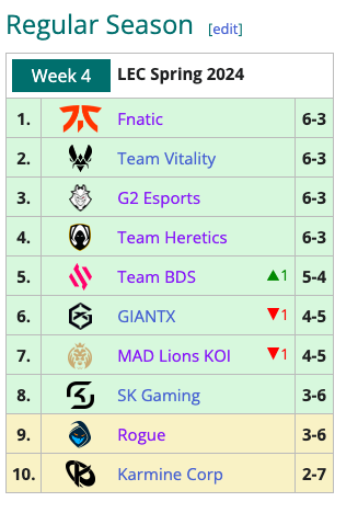 I G2 Esports, vincitori del Winter Split 2024 un mese e mezzo fa, sono partiti con il piede giusto battendo due rivali dirette per la pole position quali BDS, Mad Lions KOI oltre alla più abbordabile Karmine Corp. Nella seconda settimana di partite è arrivata la sconfitta contro Fnatic, altra rivale per il titolo, ma anche due vittorie (vs GX e Team Heretics) che hanno matematicamente qualificato G2 Esports ai Playoffs.