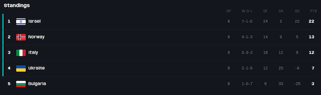 Dopo 8 partite, l’Italia ha chiuso con 13 punti e un deludente terzo posto nel girone, utile comunque per accedere alla fase successiva.