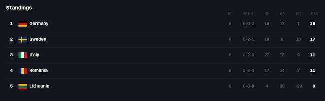 Diciamolo subito: non è stata un’Italia all’altezza delle aspettative. Gli azzurri non hanno brillato, soprattutto nelle partite contro le rivali dirette per il pass, cioè la Germania e la Svezia. Alla fine ne è venuta fuori una perfomance da “obiettivo minimo”, cioè la permanenza in Division 1, ma niente di più. Le avversarie di turno, oltre al team tedesco e svedese, erano Lituania e Romania.