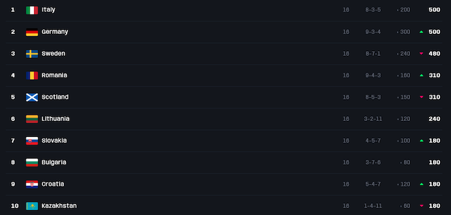 Nella Conference 2 si è imposta l’Olanda, seguita a distanza dall’Inghilterra. Entrambe dominano anche nel consistency ranking, motivo per cui possono considerarsi già al Main Stage. La terza potrebbe essere Malta, che è ben piazzata nel ranking e giocherà l’ultima week sempre in Division 1.