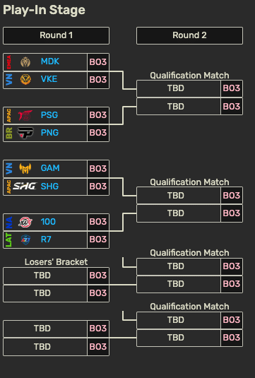 Queste otto squadre si affrontano in un double elimination bracket, cioè un doppio tabellone dove chi vince due sfide consecutive si qualifica al Main Event, chi ne perde due è fuori, le restanti si sfidano tra loro per gli altri due posti in palio. Tutte le partite si giocano in modalità best-of-3, live alla Riot Arena di Berlino dal 25 al 29 settembre.