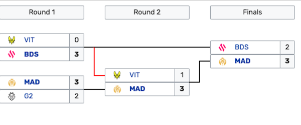 I Mad Lions hanno così battuto G2 Esports per 3-2, qualificandosi per il secondo turno dei Playoffs. Qui hanno incontrato il Team Vitality assetato di riscatto, ma l’organizzazione spagnola non ha fatto sconti neanche ai francesi. I Mad Lions sono partiti con il piede giusto, poi nella seconda partita Vitality ha riportato in parità la sfida. Sull’1-1 è salito in cattedra il junger spagnolo Javier “Elyoya” Prades Batalla che ha favorito con le sue giocate la vittoria dei Mad Lions nelle successive due partite. 3-1 e finale servita per l’organizzazione iberica.