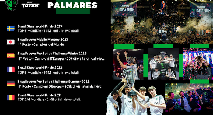 Reply Totem ha sempre cercato, in ogni titolo in cui si è investito per competere con continuità, di puntare al tetto del mondo. Oltre al team di Brawl Stars, ci sono altri giocatori che sono arrivati fino alla top 16 mondiale su altri titoli, ad esempio FIFA e Warzone. La dirigenza interpreta così l’eSport, e cerca di dare questa impronta ad ogni singolo o squadra che gioca per rappresentare l’organizzazione.