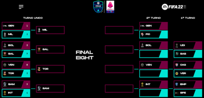 La formula della eSerie A TIM edizioni 2021-22 prevede che dal Winner Bracket 4 squadre accedano alle Final Eight, ovvero le finali per lo scudetto in programma il 12 e il 13 aprile.