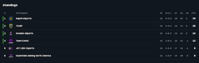 Insieme a Napoli Esports e Team Exeed avanzano agli ottavi di finale TG.Nip e KrowMx eSports. Questa è la classifica finale del Gruppo B: