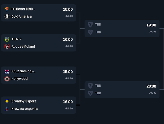 Infine il D qualifica l’organizzazione francese Atlantide Wave (“Stingrayjnr” e “Fouma”), il Brøndby Esport (“Klanke”-“Blazek”), Apogee Poland (“Blachu”-“Furman”) e la formazione nordamerica DC United (“KingCJO” e “AgitPower”).