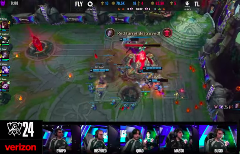 A difendere il competitivo occidentale, nel 2024 c’è FlyQuest, organizzazione nordamericana affiliata alla società NBA dei Milwaukee Bucks. Il suo quintetto molto internazionale, composto da “Bwipo” (Belgio), “Inspired” (Polonia), “Quad” (Corea del Sud), “Massio” (Canada) e “Busio” (USA), è riuscito a centrare la qualificazione per il KO Stage solo nell’ultimo round dello Swiss Stage.