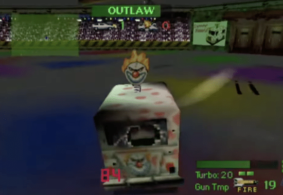 Creato nel 1995 da SingleTrac e pubblicato da Sony Computer Entertainment per PlayStation, Twisted Metal si configura come serie di videogame di scontri tra veicoli. In sintesi, i giocatori usano macchine, furgoni e altri mezzi su ruote – tutti pesantemente modificati e armati – per darsele di santa ragione in un’arena urbana. Il risultato è un mix di combattimenti frenetici, ambientazioni cupe e un immaginario grottesco che attinge tanto all’horror quanto al fumetto underground.