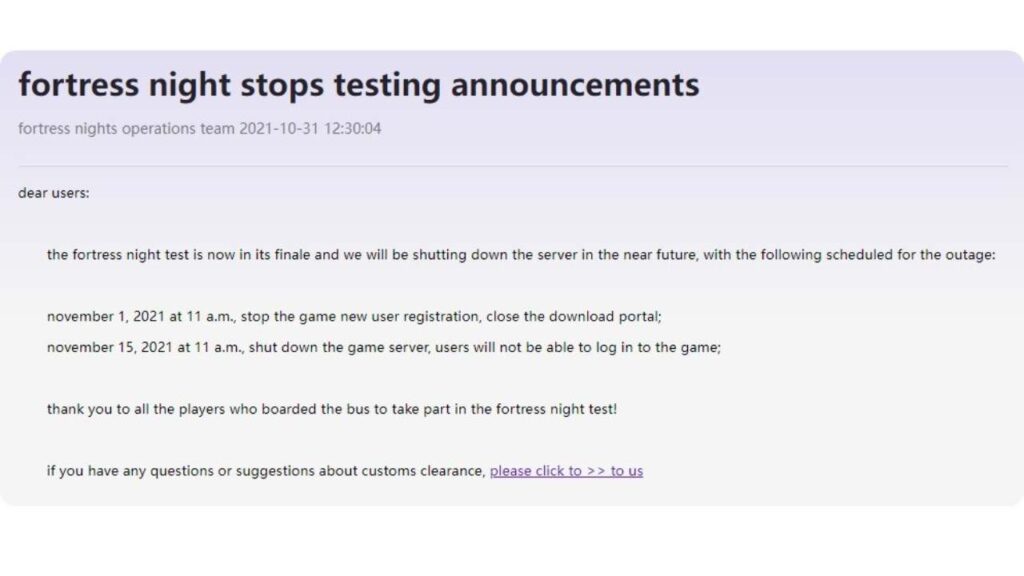 Troppo per poter competere con altri sparatutto, come ad esempio PUBG che in Cina è molto più diffuso tra i giovani. Morale: Epic Games ha annunciato la chiusura dei server dedicati a Fortress Night. Già dal primo novembre i nuovi giocatori non possono più registrarsi. Il 15 novembre arriverà invece il definitivo distacco della spina.